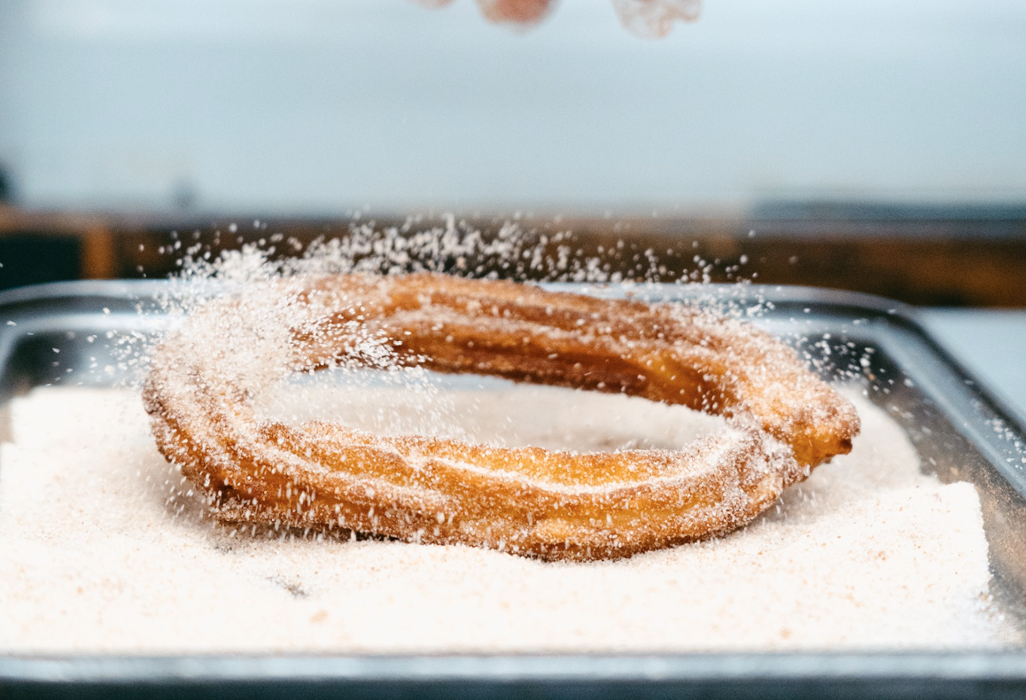 Klassisk churros vendt i sukker og kanel. Klassisk churros med sauce og is/softice.