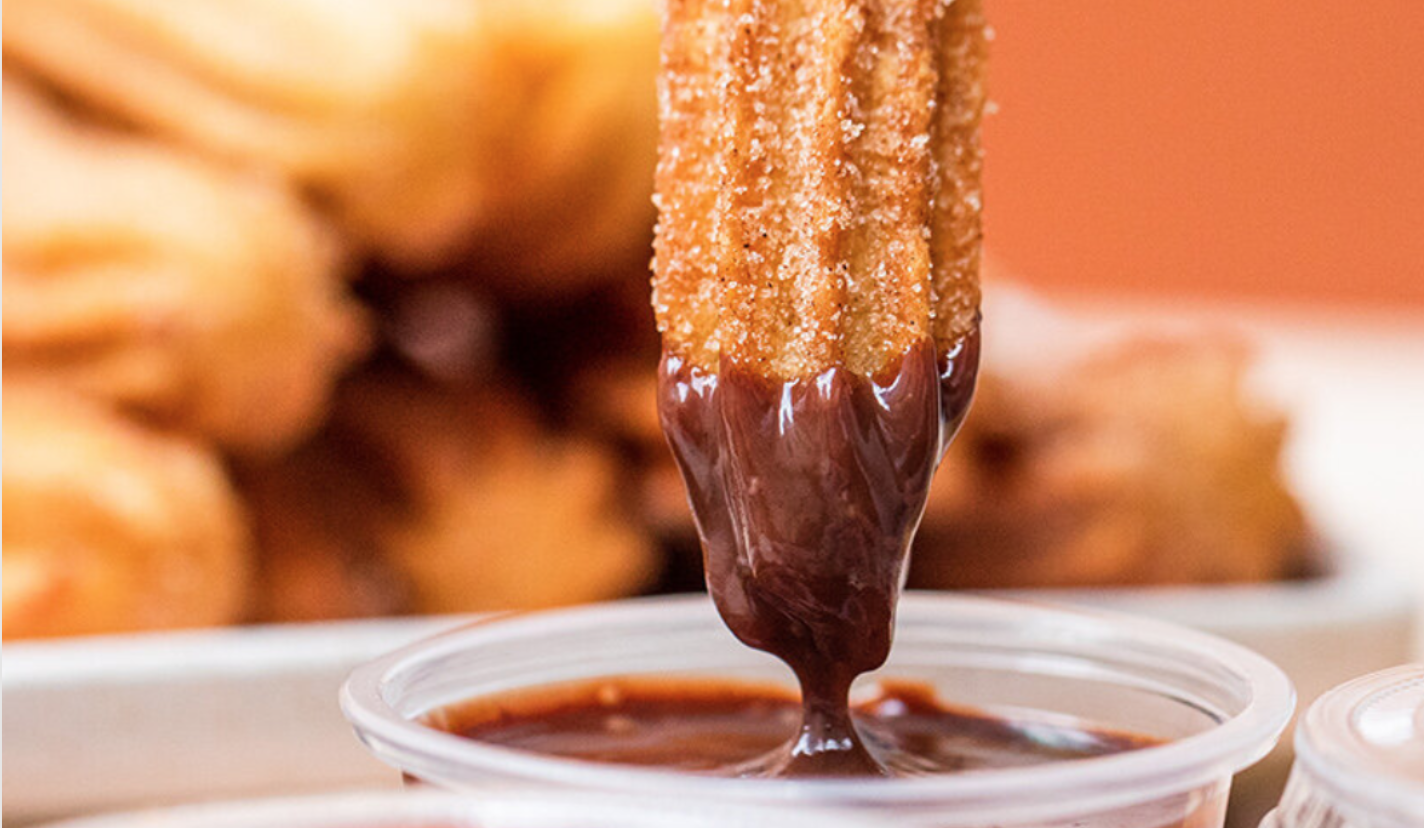 Churros vendt i sukker/kanel med sauce og softice med en bred vifte af drikkevarer. All you can eat (ad libitum)