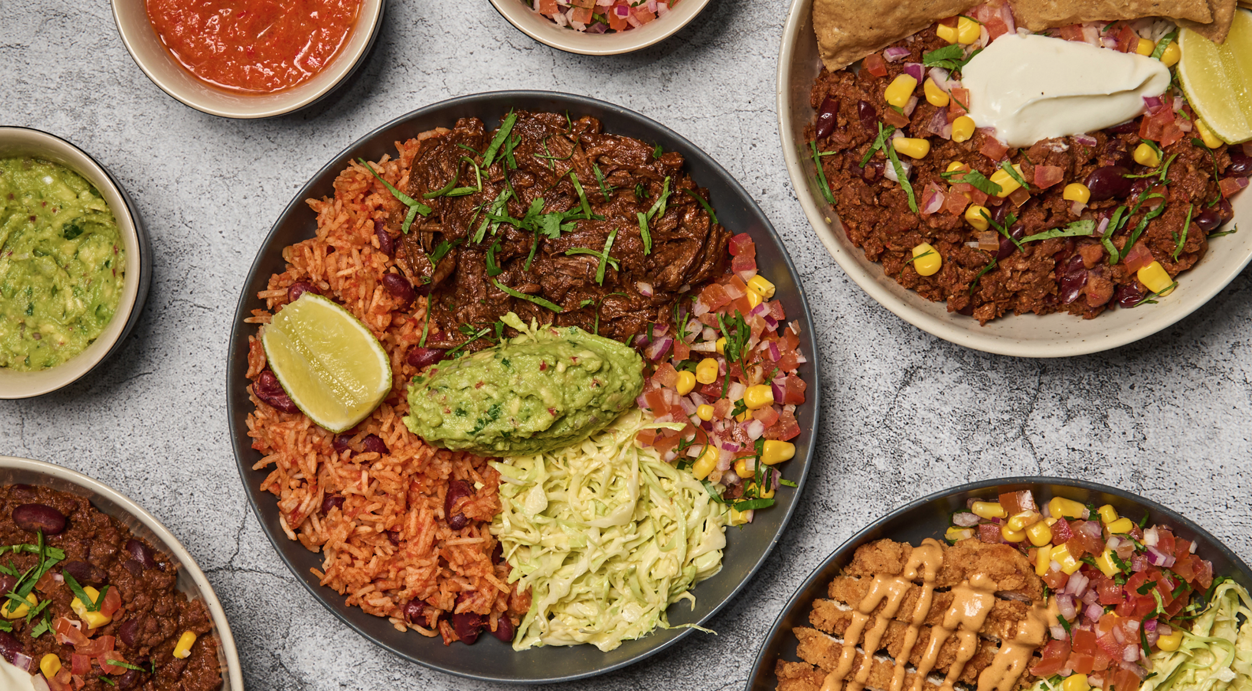 Smagefulde mexicansk bowls. Burrito, quesadilla og nachos. Appetizers som guacamole og salsa.
