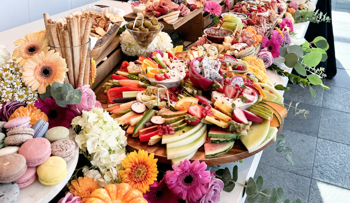 Tapas med et farverigt display af spanske pølser, lufttørret skinke, der smager af tradition, en række udsøgte oliven, forskellige oste, der komplementerer hinanden, samt en frisk blanding af frugt, kiks og brød med mere.